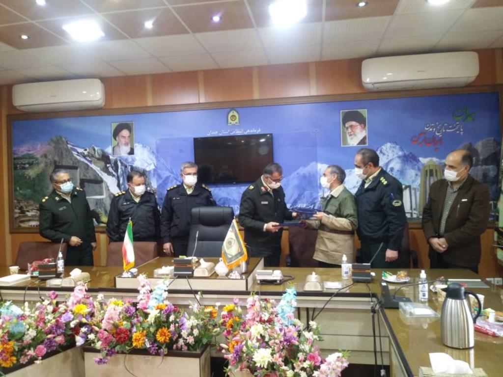به گزارش پایگاه اطلاع رسانی اداره کل منابع طبیعی و آبخیزداری استان همدان: مقارن ظهر امروز سردارسلمان امیری فرماندهی نیروی اتظامی استان و مدیر کل ، معاون فنی وفرماندهی یگان حفات منابع طبیعی وآبخیزداری استان تفاهمنامه همکاری فی مابین در مقر فرماندهی استان به امضاء رسید.