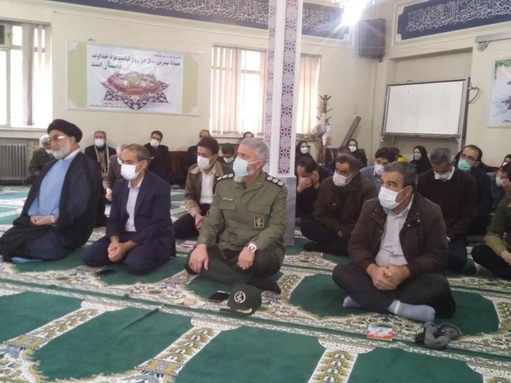 به گزارش پایگاه اطلاع رسانی اداره کل منابع طبیعی وآبخیزداری استان همدان:مراسم بزرگداشت سردار شهید حاج قاسم سلیمانی ، سوگواری ایام فاطمیه وگرامیداشت حماسه9دی" روز بصیرت ومیثاق امت با ولایت صبح امروز (چهارشنبه) با رعایت نکات بهداشتی و فاصله گذاری اجتماعی با حضور حضرت حجت الاسلام والمسلمین سید موسی حسینی مجد امام جمعه شهرستان اسدآباد، فرمانده بسیج ادارات وکارخانجات استان، مدیر کل ،معاونین، کارشناسان و جمعی از کارکنان منابع طبیعی وآبخیزداری استان در نماز خانه این اداره کل برگزار شد.