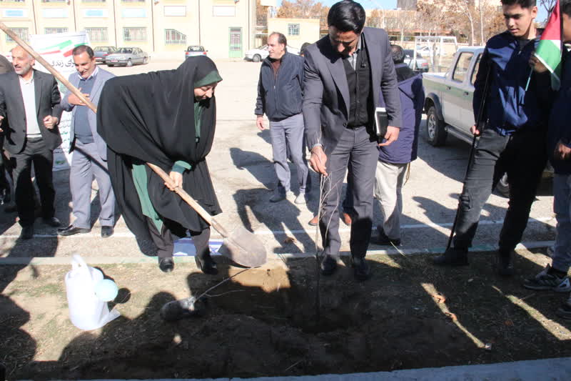 پس از صحبتهای مسئولین حاضر در مراسم، به یاد کودکان و بانوان غزه در محوطه هنرستان فردوسی نهال کاری انجام شد.
